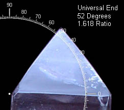 Relationship of the 52 degree angle and Phi 1.618 the golden mean Being a broadcast engineer, I would like to give a perspective on the amplification of thought through the crystals lattice structure. Marcel used to say that the known laws of science and properties which we can measure were "akin" to those which we were working with in the mind/matter research with the crystals. In radio theory, a single antenna has a definite gain. Duplicating this antenna and feed from the same source will provide 3dB more gain. Duplicating again will add 3dB more. etc. Antennas arranged in a configuration called a "Phased Array" appear very similar to that of a repetitive crystalline structure. Enormous gain is realized by feeding this large array of little repetitive identical antennas such that they are in phase with each other by feeding the signal and spacing the distance of them apart for the correct wavelength or phase relationship. So that the overall effect has greatly amplified the signal of receiving or transmitting. You could say that, all of the little antennas resonating on the same wavelength are equivalent to a large powerful high gain antenna, whose signal strength can break through the background noise and override weaker signals. Another analogy is that a thought pattern, akin to a radio signal, which is induced into the repetitive crystalline array, is rebroadcasted in a coherent or in-phase with itself relationship, so that the accumulative effect is to amplify the original thought pattern from the individuals mind. This pattern is now being joined by trillions of other programmable minds, you could say, in complete unison or coherency of the originating thought that was induced into the crystalline matrix. Imagine as though you are a magician and you have at your command trillions of unpatterned minds that will say yes to whatever you think by reflecting and patterning your thoughts. It is like many Buddhist monks chanting and praying in unison toward a single vision of thought and therefore through the power of numbers, it becomes more powerful.