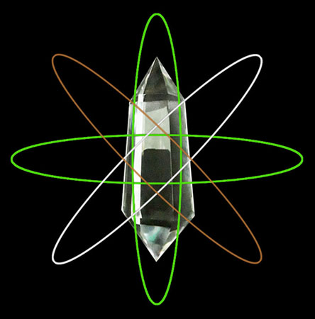 2) The Torsion Field Coils The Phryll Generator Crystal is technology that is used on the Planet Erra. A crystal cut to the Vogel/Eredyon specifications is wrapped with two coils that are perpendicular to each other at 90 degrees. Copper wire is wound clockwise and Silver wire is wound counter-clockwise. It is important that the spacing between the wires be at least equal to twice the diameter of the wire of each coil to create the torsion field. The two coils are pulsed alternately at 4096 Hz frequency. This creates a torsion field within the crystal lattice structure which releases the Phryll. Specifications: Copper coil wound clockwise (Note that clockwise