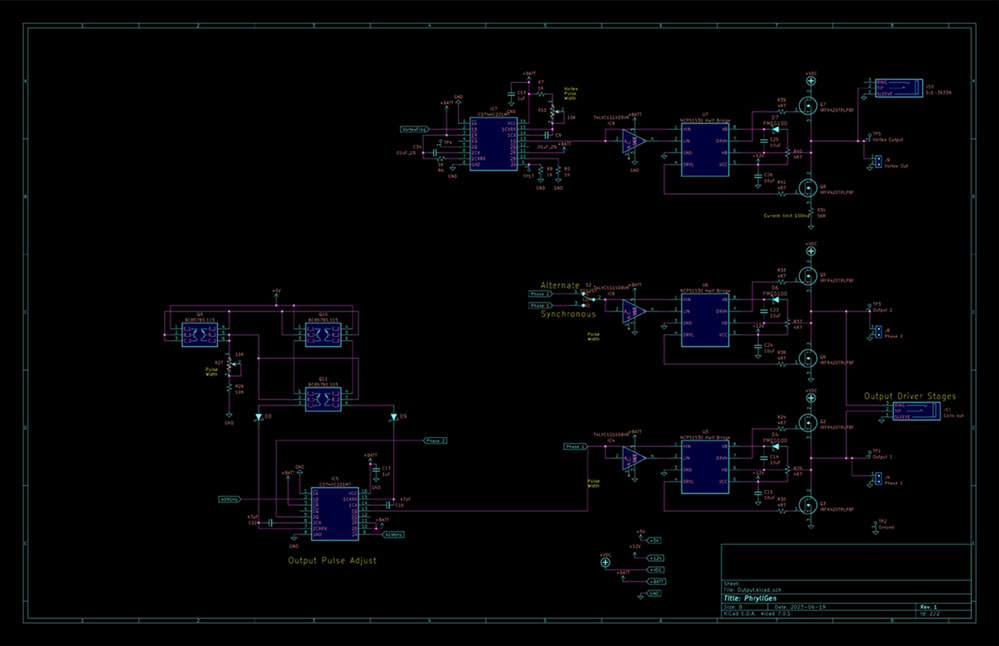 Schematic resource for a dual output of 4096 Hz pulsed power for the two torsion field coils Schematic Revision Date 10-31-2023